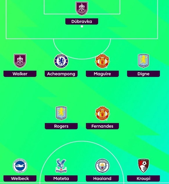 后场球员:凯尔-沃克(伯恩利)、阿昌庞(切尔西)、马奎尔(曼联)、迪涅(维拉)