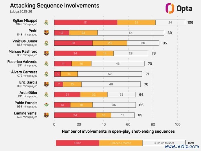 - 本赛季西甲加入 有效攻击 排名:姆巴佩106次居首,佩德里89次第二2025-12-05